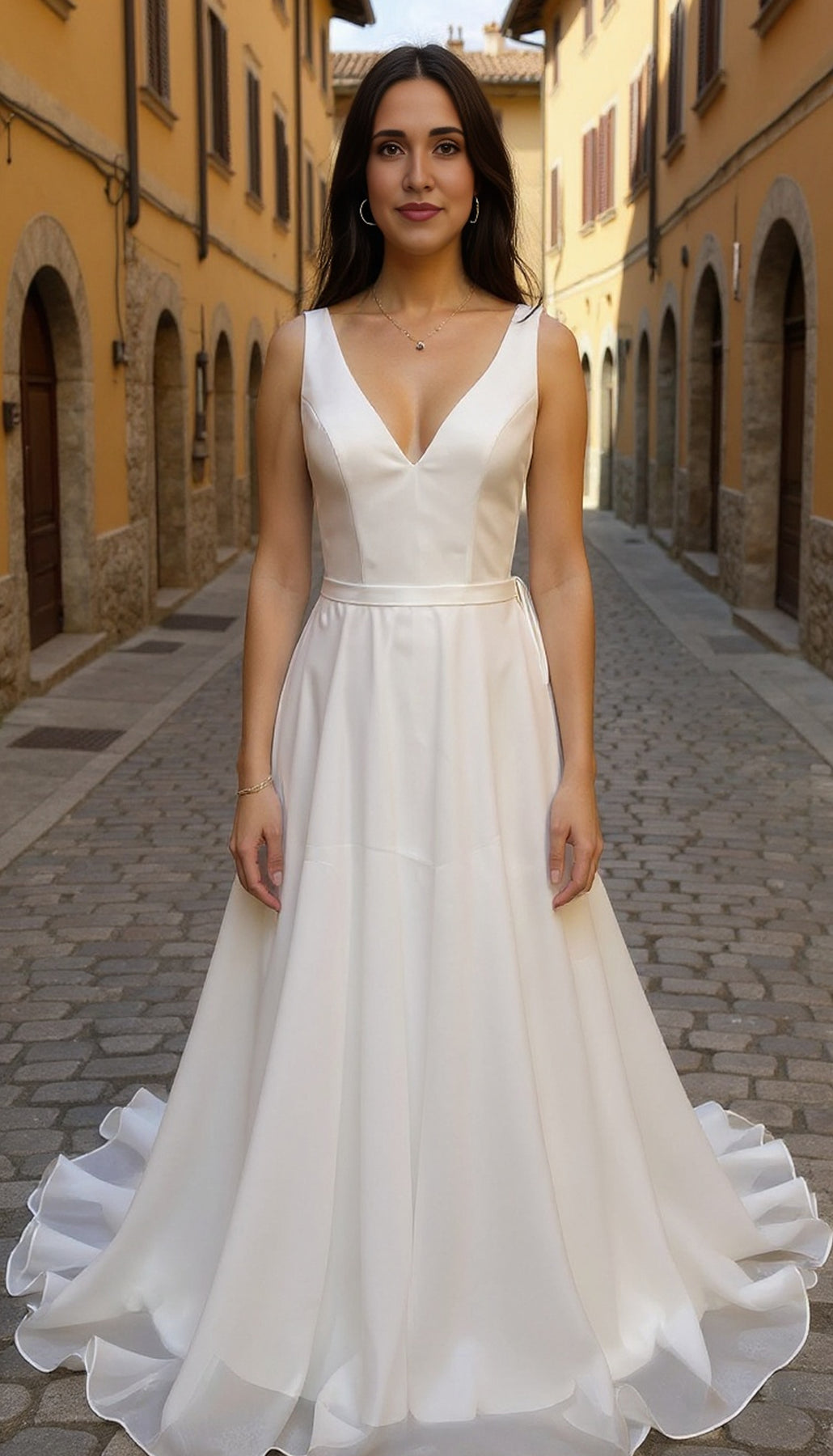 Our new Tempo dress is serving bridal beauty from every angle — especially the back. With a swoon-worthy square low back, silky smooth satin, and a detachable organza skirt that floats behind you, this dress is for the bride who knows the exit is just as important as the entrance.