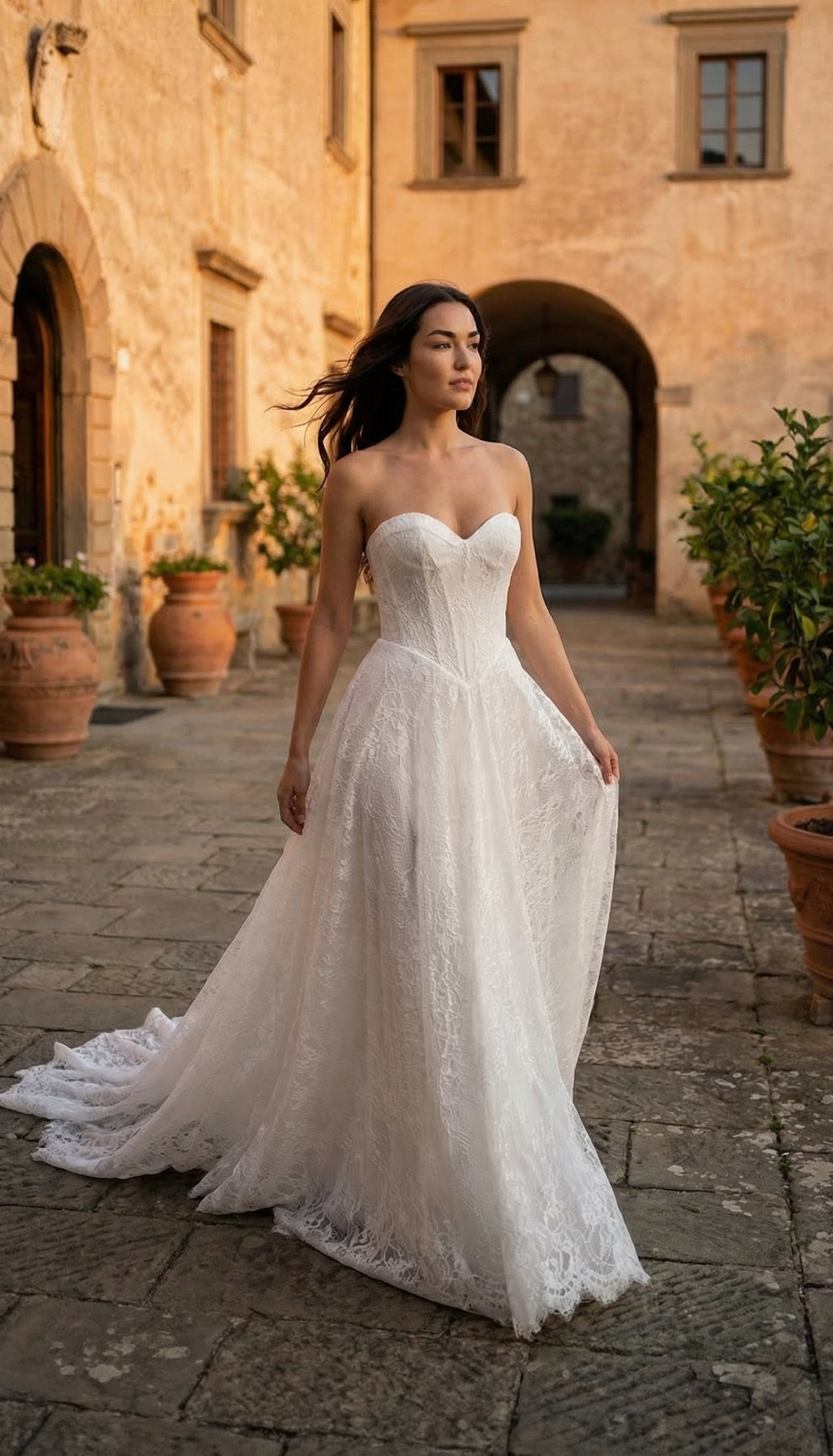 Lace A-Line Wedding Gown with Lace Chantilly Bodice