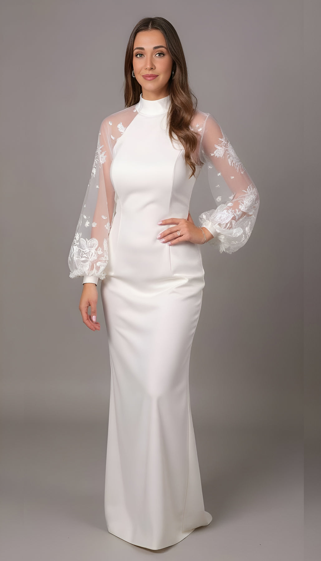 We offer a beautiful collection of crepe wedding dresses created by Amy Duke from Velvet Birdcage Worthing. Classic gowns that can be easily adapted and can be made in any length, any colour. If you want to add your own personality to your wedding dress, Velvet Birdcage can have your dress made to your exact requirements; for example, high or low back, and sleeves, change the beading or fabric. You can also mix the top of one, with the bottom or another, or go full bespoke. All dresses are available in any size and colour.